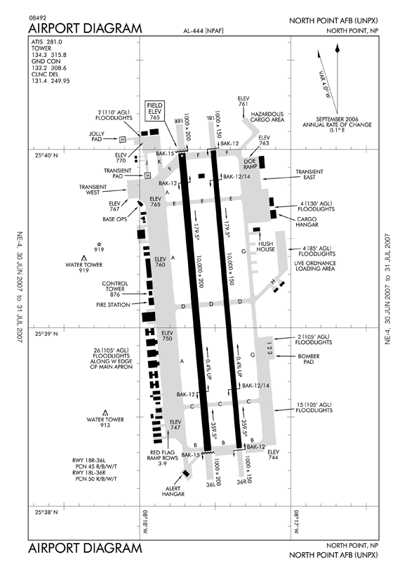 標高765ftや偏角4°はお遊び。磁北は北ウェローの設定。リアルでいうIATAはNPX、ICAOはUNPX。