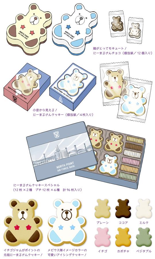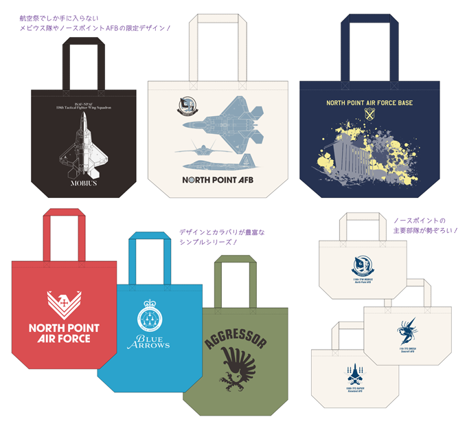 ノースポイント空軍基地のマスコットやグッズの設定画。古い設定のままです。
