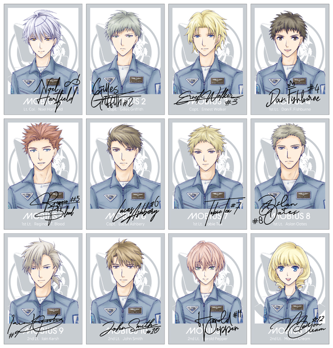 航空祭パンフに向けてメビ隊のキャラ絵とサイン一覧。キャラ絵は2025に手直し。 ⇒ メビウス隊